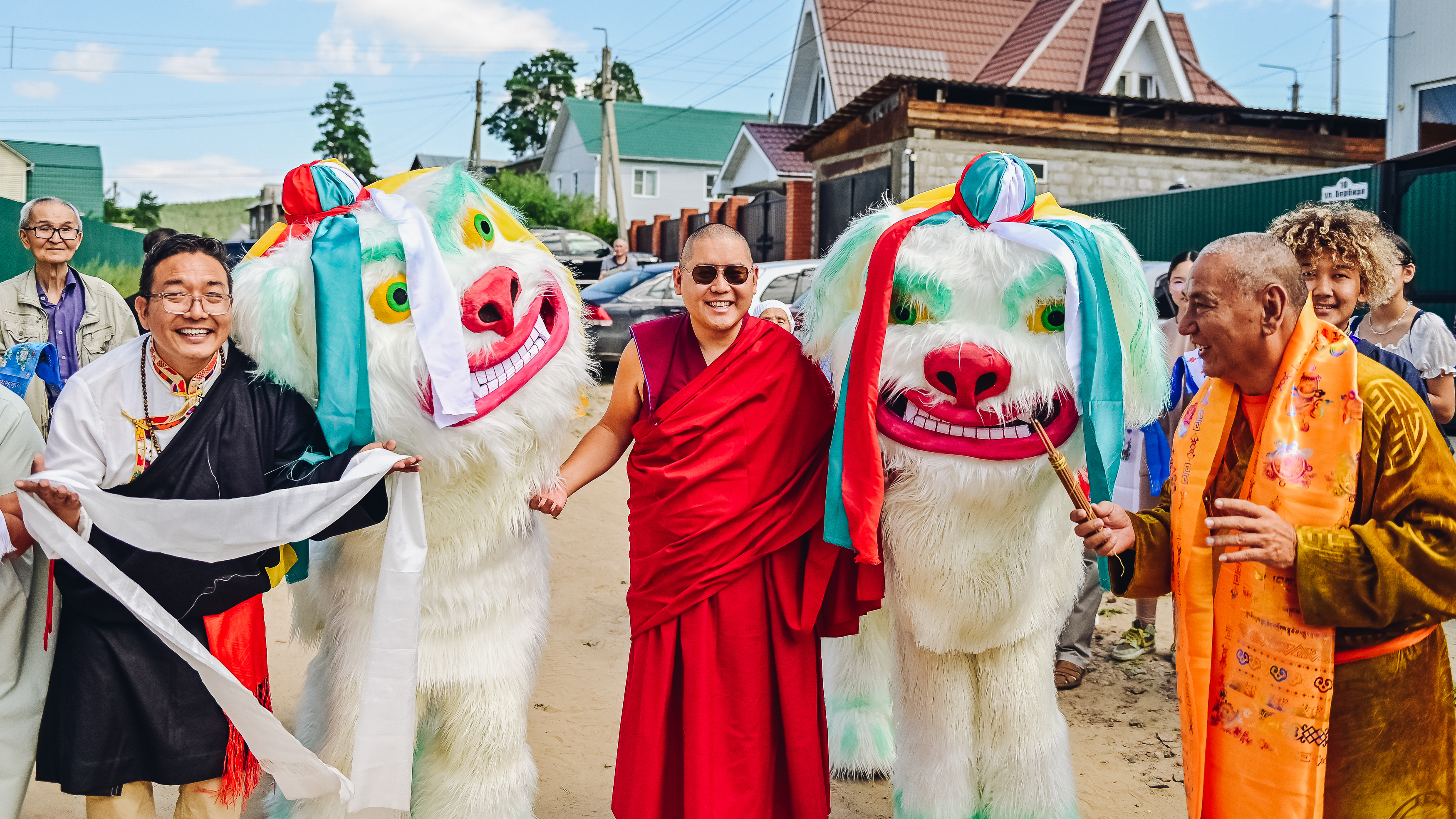 Среди учеников Геше-ла есть множество прекрасных артистов, которые с радостью сделали подношение песен и танцев дорогим гостям. Вместе с ярким солнцем сияли и счастливые лица людей.