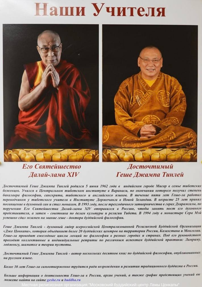 Центр создан группой учеников постоянно живущего в России тибетского ламы (наставника), ученика его Святейшества Далай-Ламы 14, Досточтимого геше Джампа Тинлея, (https://buddha.ru/teachers/Geshela/) который является духовным руководителем этой организации.