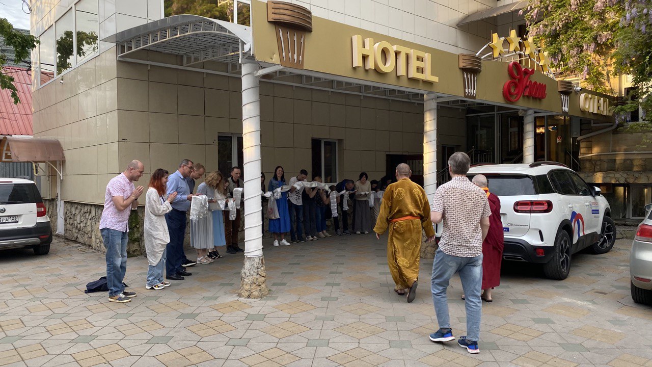 Монахи прибыли для построения мандалы Будды Медицины, дарования благословения, проводения ритуалов и молебнов в нескольких городах.