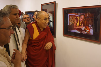 Дхарамсала, 11-е апреля: в воскресенье тибетский лидер Его Святейшество Далай-лама посетил фото-выставку «Спасибо, Далай-лама», на которой были представлены фотографии тибетского лидера, сделанные индийским журналистом Виджаи Кранти за 43 года его работы с тибетским народом.
