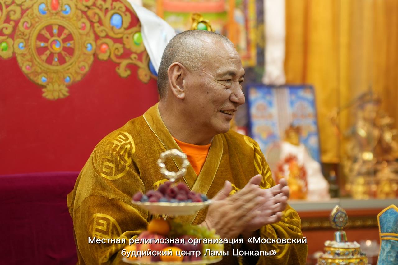 Драгоценный Учитель вместе с учениками из московского центра на праздничном Цоге по случаю присуждения Его Святейшеству Далай-ламе Нобелевской премии мира.