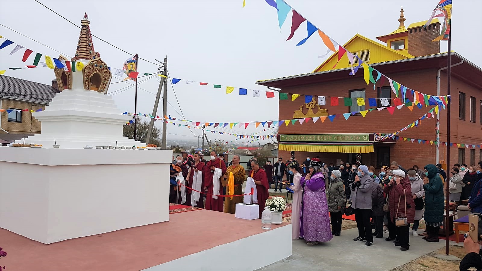 «Мы посвящаем эту ступу долгой жизни Его Святейшества Далай-ламы, прекращению в мире пандемии короновируса, а также процветанию всех наших центров и гармонии среди учеников в калмыцком буддийском центре «Ченрези»»