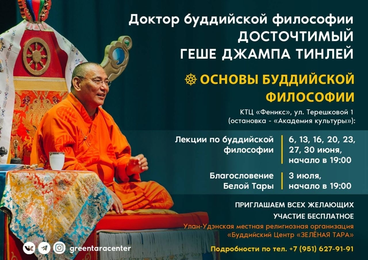 Расписание Учений Досточтимого Геше Джампа Тинлея в Улан-Удэ