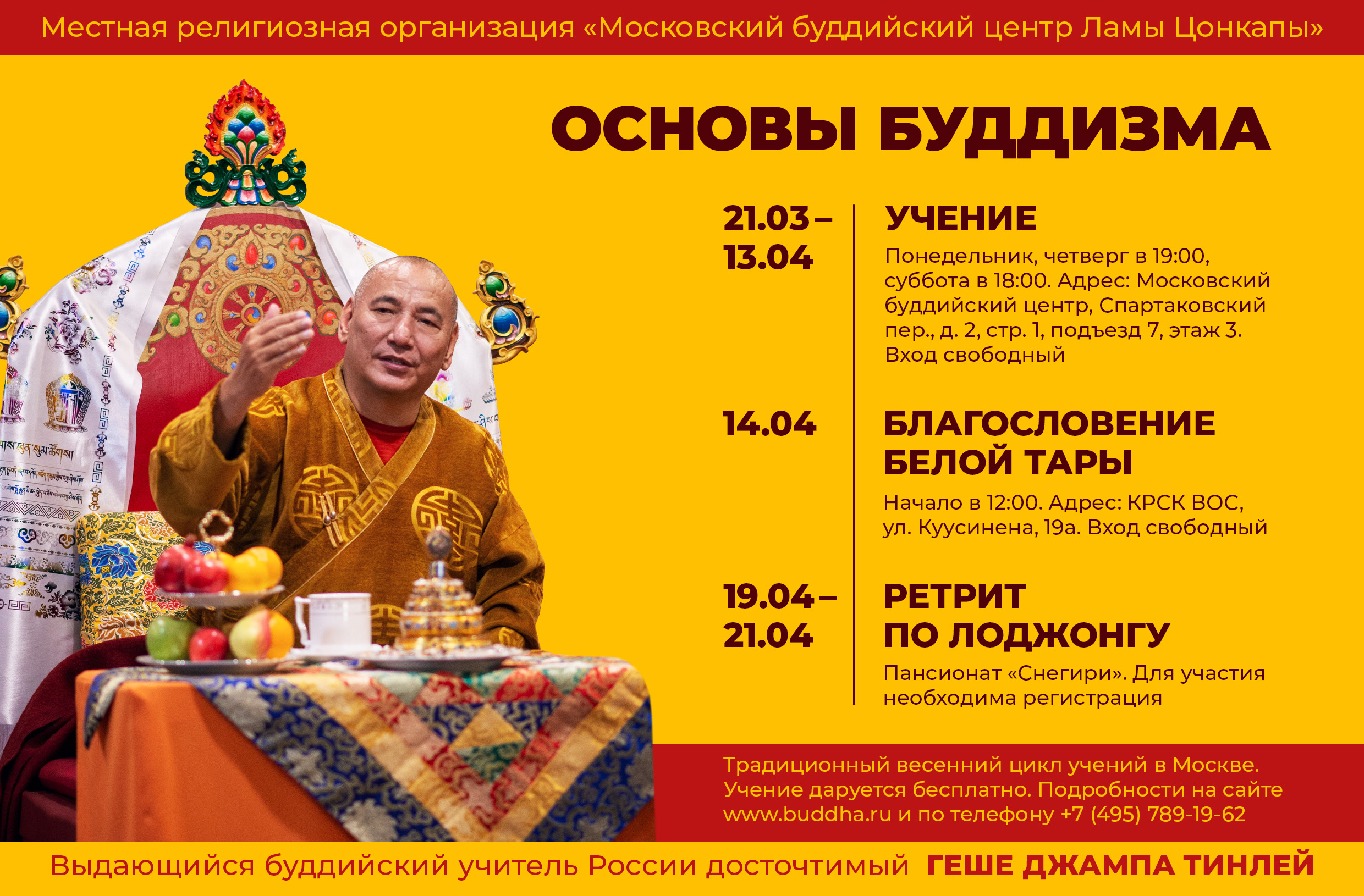 С 21 марта по 14 апреля в Москве состоялся ежегодный весенний цикл лекций Досточтимого Учителя Геше Джампа Тинлея, который вот уже более 30 лет ведёт деятельность по возрождению чистой Дхармы в России.