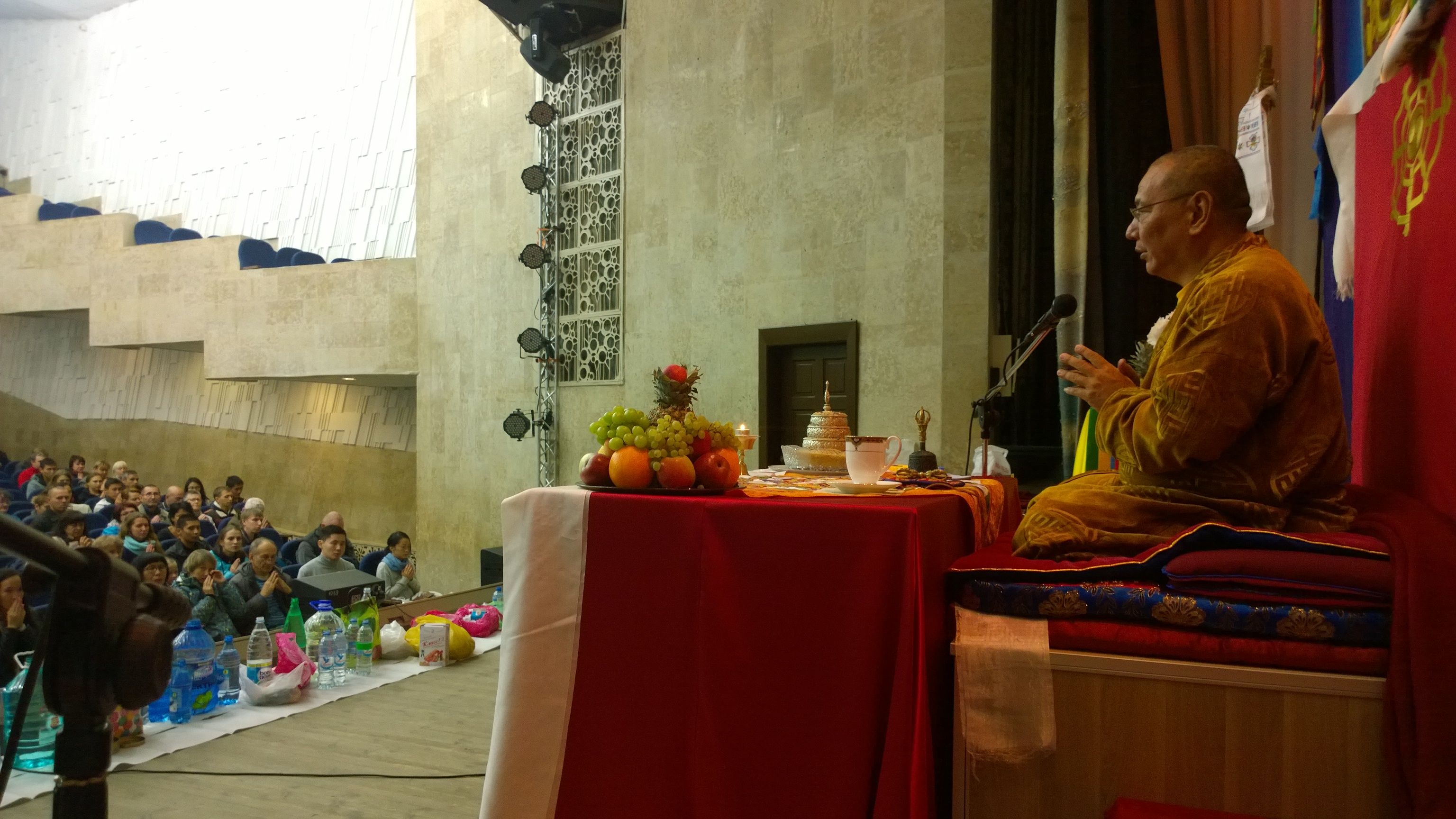Одним из самых сердечных моментов в этот приезд Геше-ла стала передача обетов генина в храме «Майтрея». По словам нашего драгоценного Учителя, это лучшая стратегия для освобождения. Спустя много лет мы задумаемся, благодаря какой стратегии мы достигли таких высоких реализаций. В то время мы будем арьями, у нас уже будет ясновидение, и мы увидим, что тысячу или миллион лет назад в России, в Новосибирске мы приняли такие обеты и с этого момента заложили стратегию освобождения от страданий и причин страданий. Также на аудиенции Учитель передал наставления о практике Гуру-йоги.