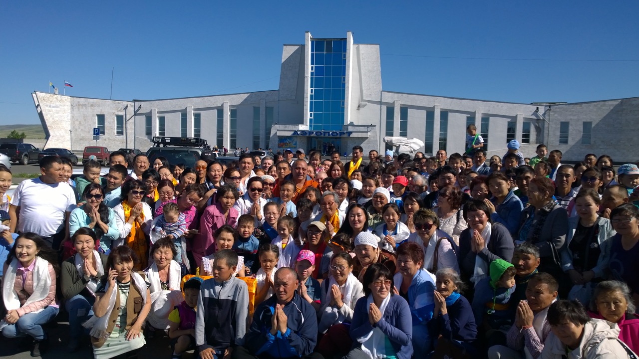 Солнечным майским днем мы встретили драгоценного Учителя в аэропорту г. Кызыла. Тех, кто пришел встретить Учителя на тувинской земле, было так много, что образовался длинный коридор. Когда Учитель вышел к нам навстречу, в сердце каждого поселились радость и умиротворение.
