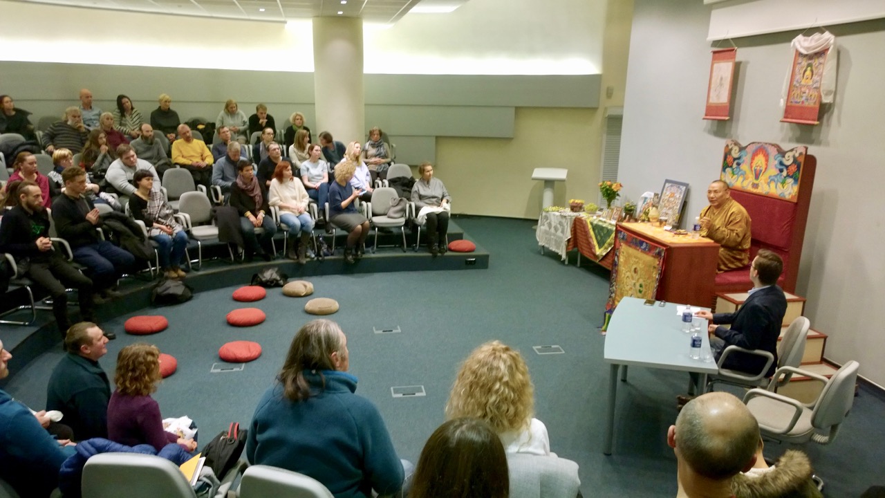 В этом году состоялся девятый визит Досточтимого Учителя в Вильнюс. Три лекции с последующим благословением Белой Тары прошли в зале, хорошо известном постоянным слушателям с прошлых лет.