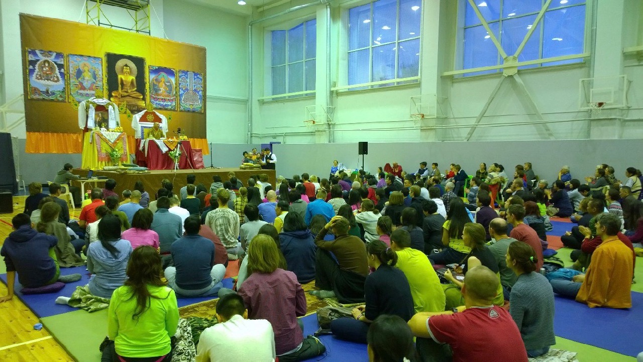 На ретрит приехало большое количество учеников из разных городов. Учитель подчеркнул, что в нашей жизни это очень важное событие. Все действия по мере продвижения сюда – покупка билета, проезд до места проведения – все это являлось накоплением позитивной кармы. Присутствующие были очень рады, поскольку богатство заслуг одно из условий избавления от собственных страданий и приведения к конечному благу всех живых существ. Как сказал Геше Ла, «У людей с маленькими заслугами не возникает даже сомнения в цеплянии за истинность. Если человек просто усомнился, правильно ли то цепляние за истинность, которое у него есть, или нет, то он уже сотрясает корень сансары».