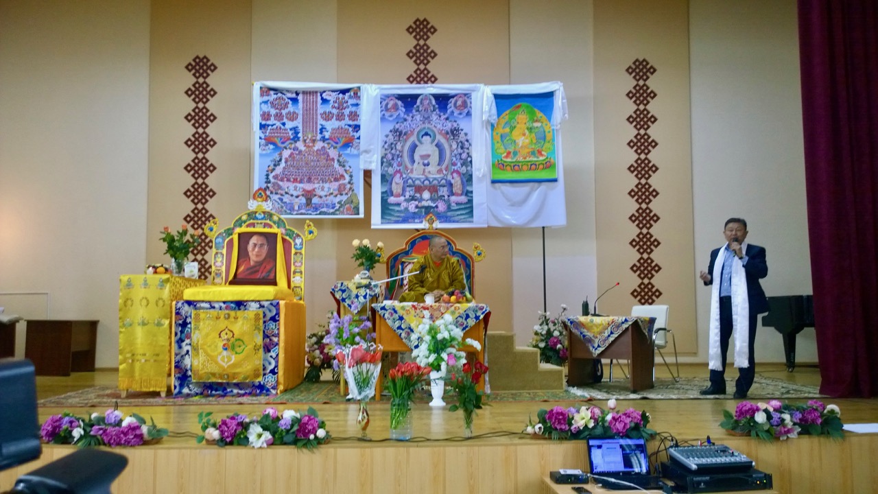 В поздравительном обращении мэр Элисты сказал: «Уважаемый геше Джампа Тинлей, уважаемые элистинцы и гости столицы, 25 лет назад в Россию прибыл духовный представитель Его Святейшества Далай-ламы геше Джампа Тинлей. Это был 1993г. и в том же году он приехал в Калмыкию. На тот момент в Калмыкии не было ни одного буддийского храма, ни одного буддийского центра. Все, о чем мы знали был бытовой буддизм, переданный нам от бабушек и дедушек: мы зажигали лампадки, читали ОМ МАНИ ПАДМЕ ХУМ. И благодаря деятельности Геше-ла у нас в Калмыкии начал возрождаться традиционный буддизм. Мы в первые услышали, что есть буддийская практика, что такое медитация. Мы начали задумываться, ради чего прибыли в этот мир, в чем смысл жизни, что есть самопознание нашего и пр. И это вещи, о которых вы услышите сегодня и о которых постоянно говорит наш Геше-ла.