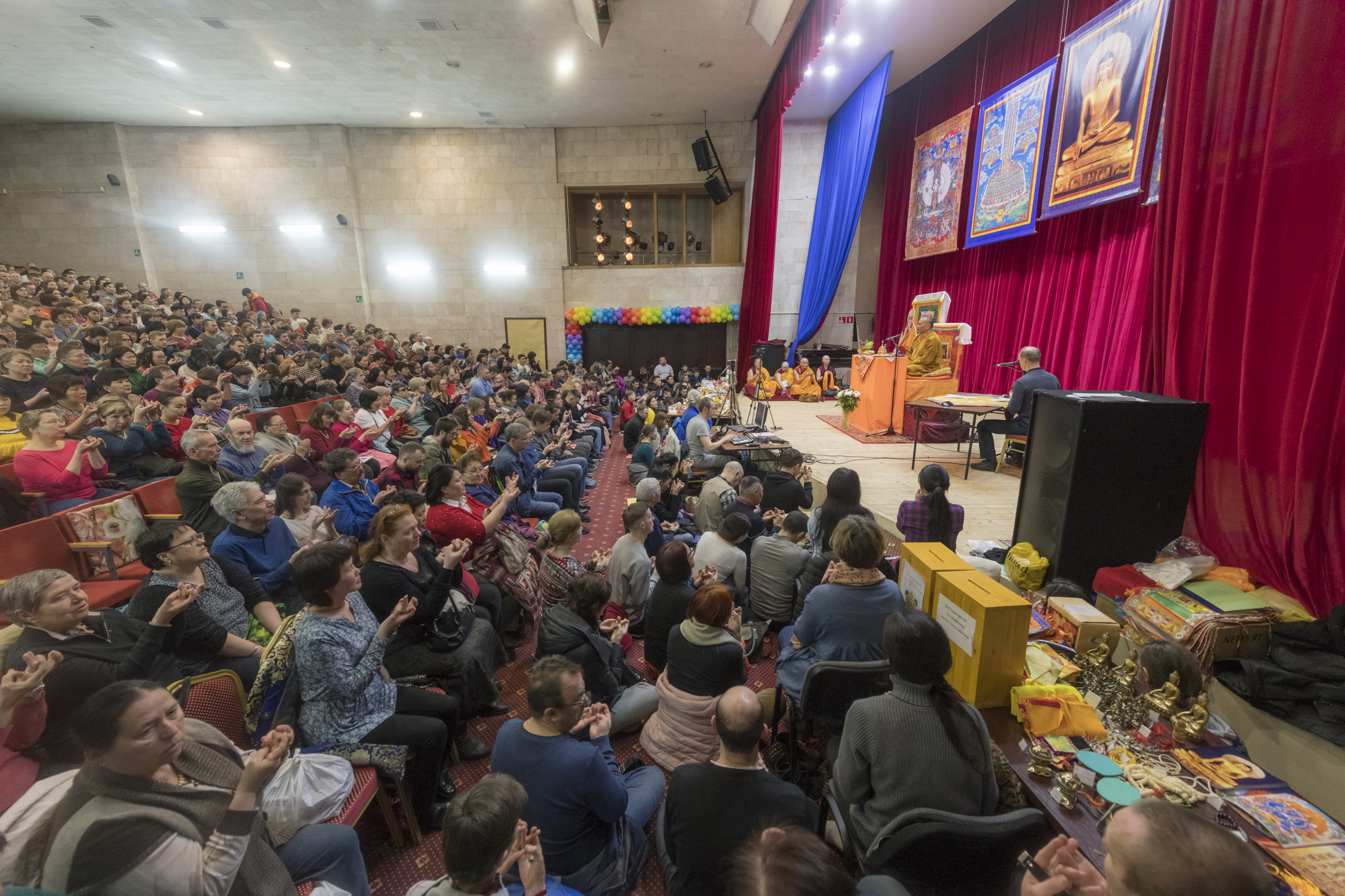 Всем присутствующим в зале невероятно повезло соприкоснуться с подлинным духовным знанием, непрерывно передающимся со времен Будды Шакьямуни через таких Учителей, как Атиша, Дже Цонкапа, мастера традиции Кадам. Досточтимый Учитель с великой преданностью и уважением передает жителям России драгоценные наставления, полученные им от Его Святейшества Далай-ламы, Пананга Ринпоче, Линга Ринпоче, геше Вангчена, геше Наванга Даргье.