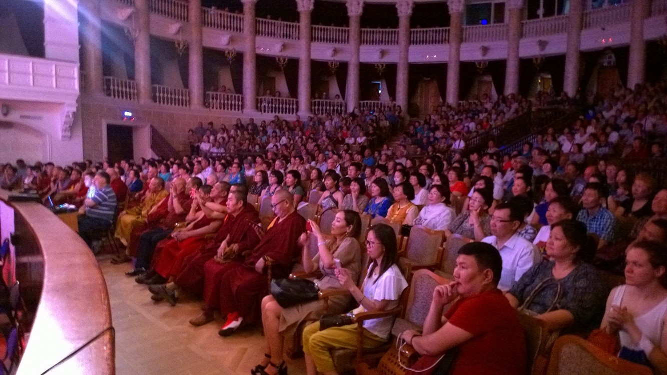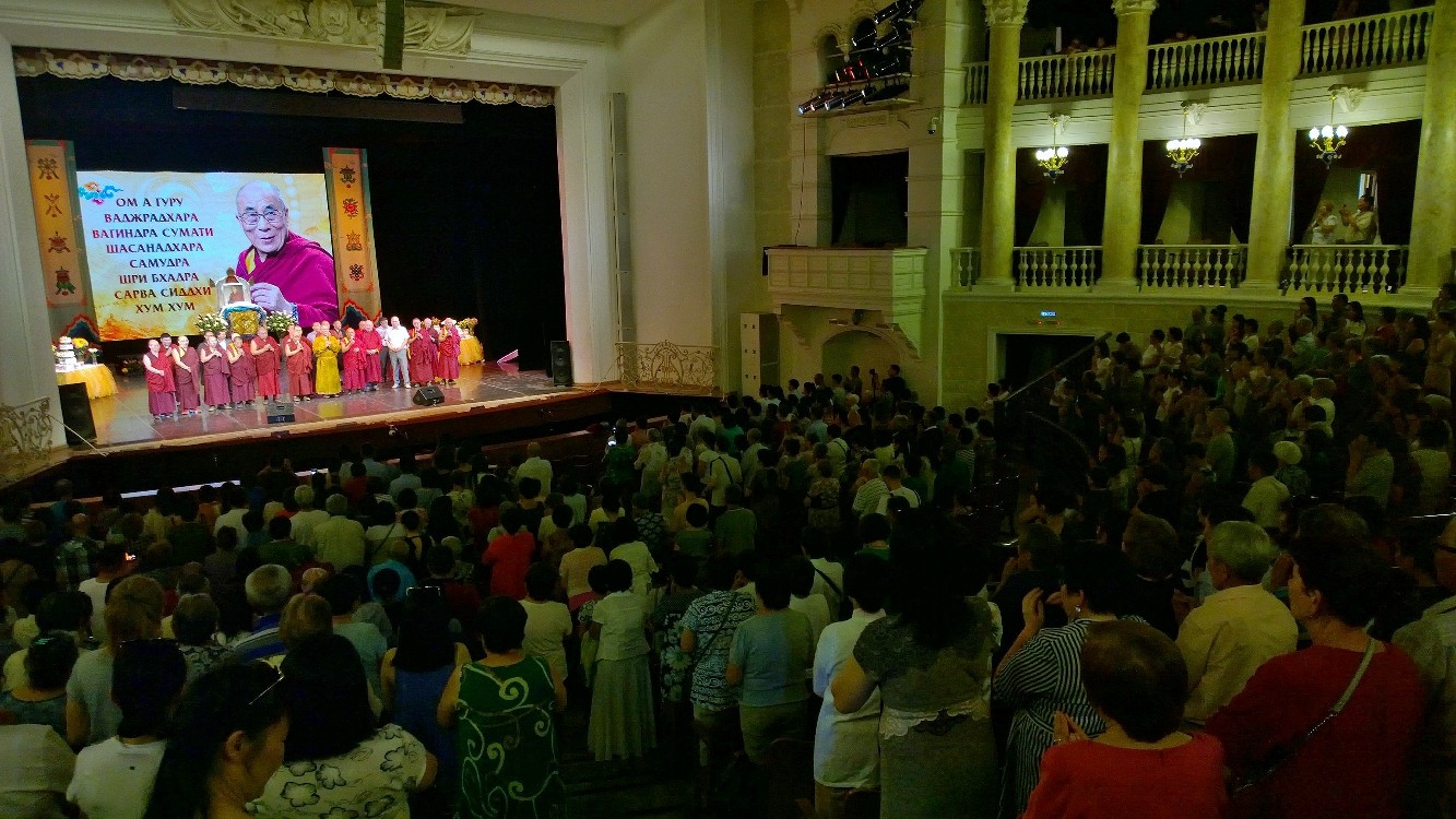 Сегодня, 6-го июля в театре оперы и балета им.н.а.СССР Г.Ц.Цыдынжапова состоялось празднование 84-летия со дня рождения Его Святейшества Далай-ламы IV. Организаторами праздничного вечера выступили буддийский центр Зеленая Тара под руководством досточтимого геше Джампа Тинлея, а также члены тибетской общины республики Бурятия. В качестве почетных гостей на праздничном вечере присутствовала делегация геше-лхарамба в составе пяти человек во главе с Тулку Текченом Ринпоче.