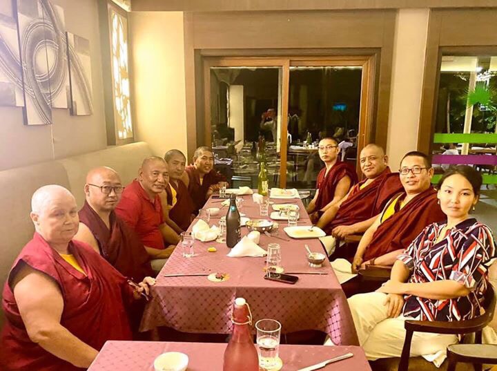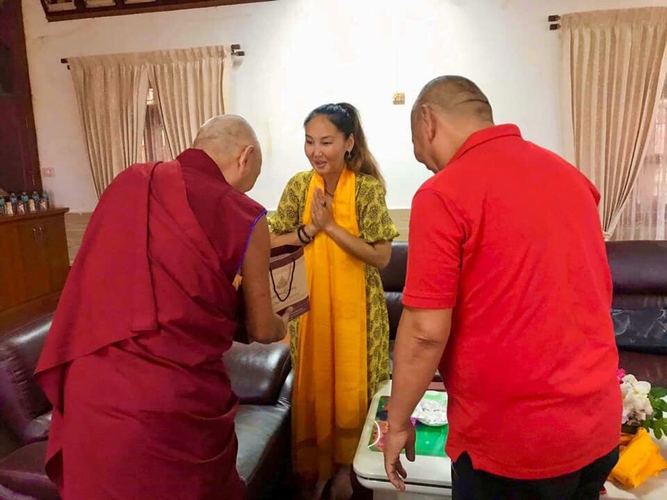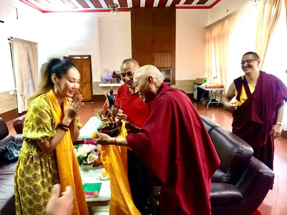 Кхен Ринпоче геше Таши Церинг, настоятель монастыря Сера Мей, и геше-лхарамба, приезжавшие для строительства мандал Будды Медицины в Россию, преподнесли Досточтимому геше Джампа Тинлею статую Будды.