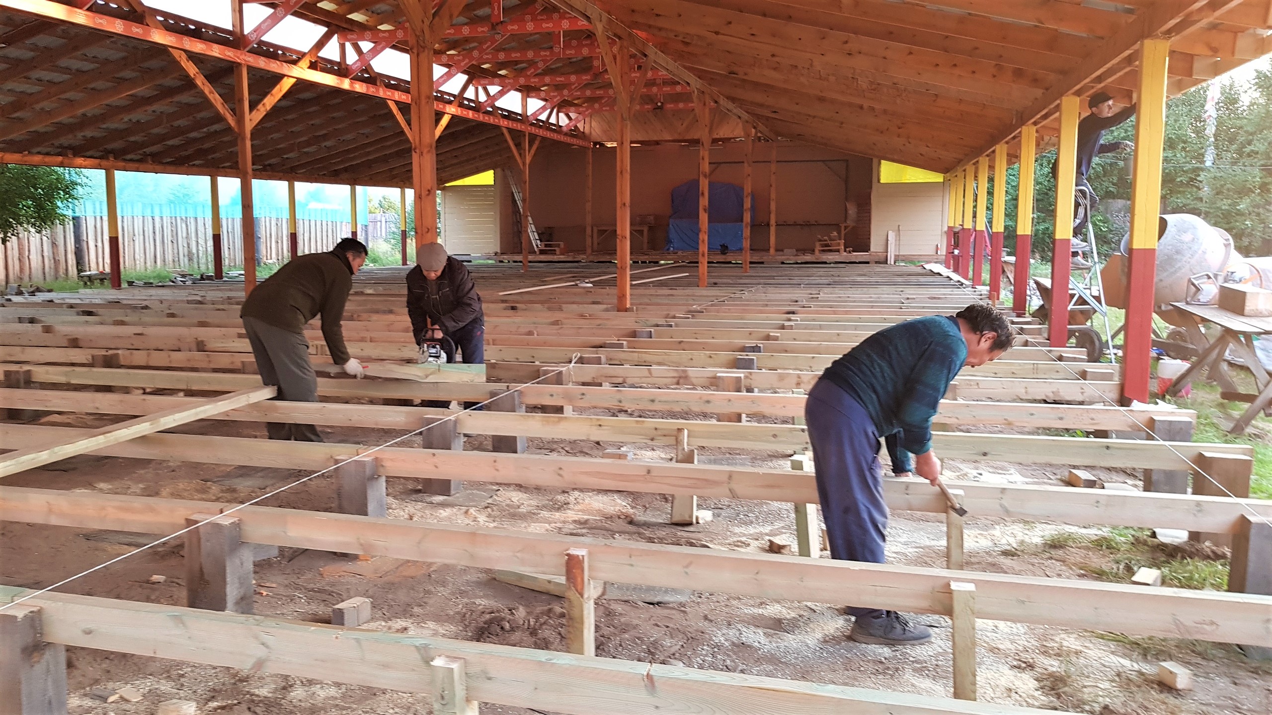 1. Настилка пола в летнем храме Байкальского Медитационного Центра