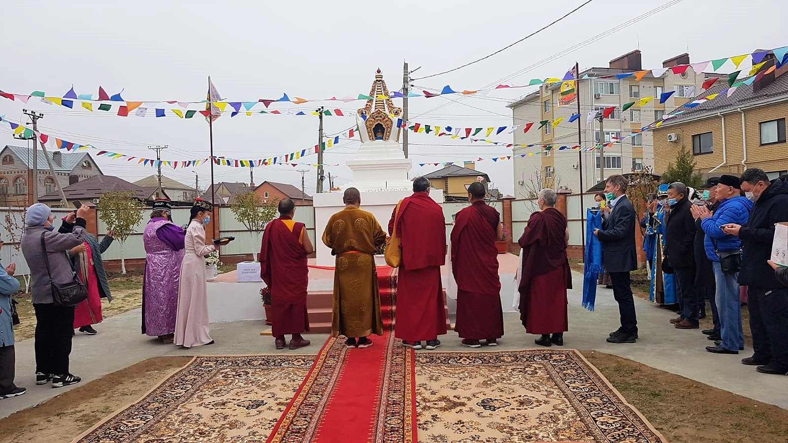 «Мы посвящаем эту ступу долгой жизни Его Святейшества Далай-ламы, прекращению в мире пандемии короновируса, а также процветанию всех наших центров и гармонии среди учеников в калмыцком буддийском центре «Ченрези»»