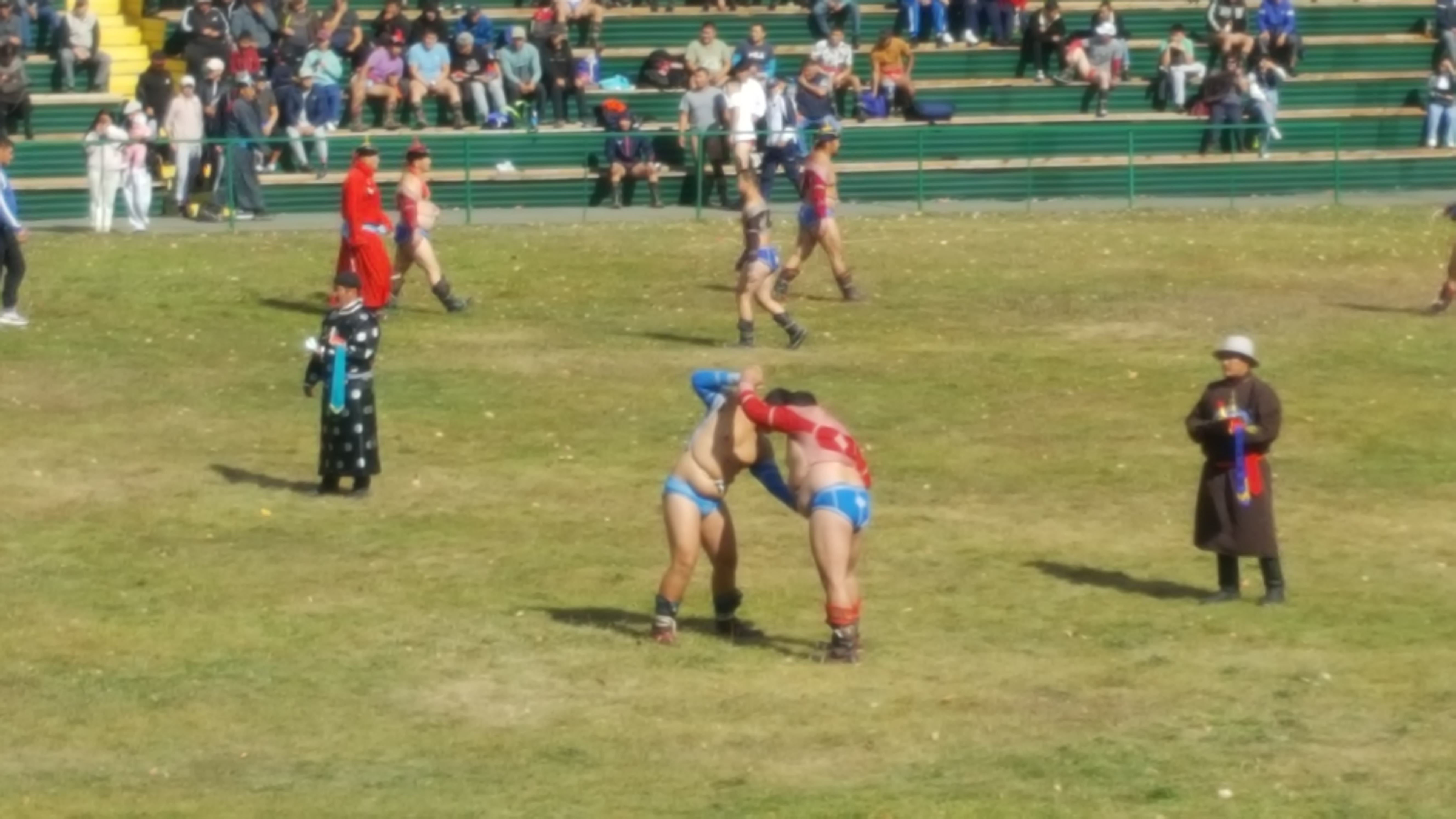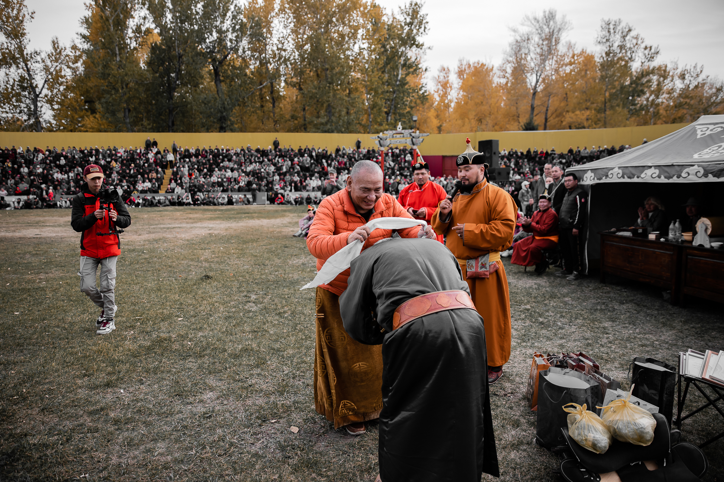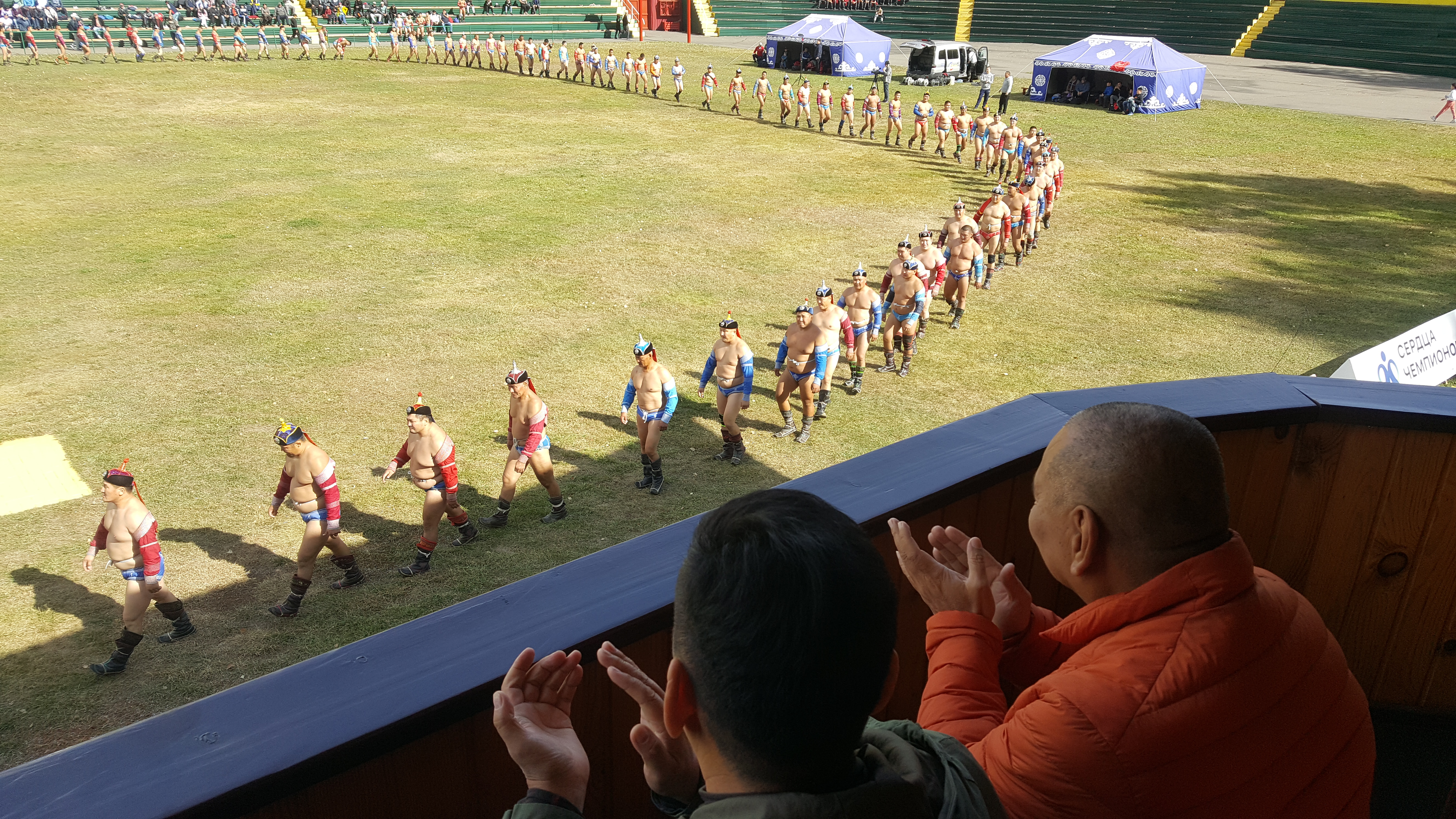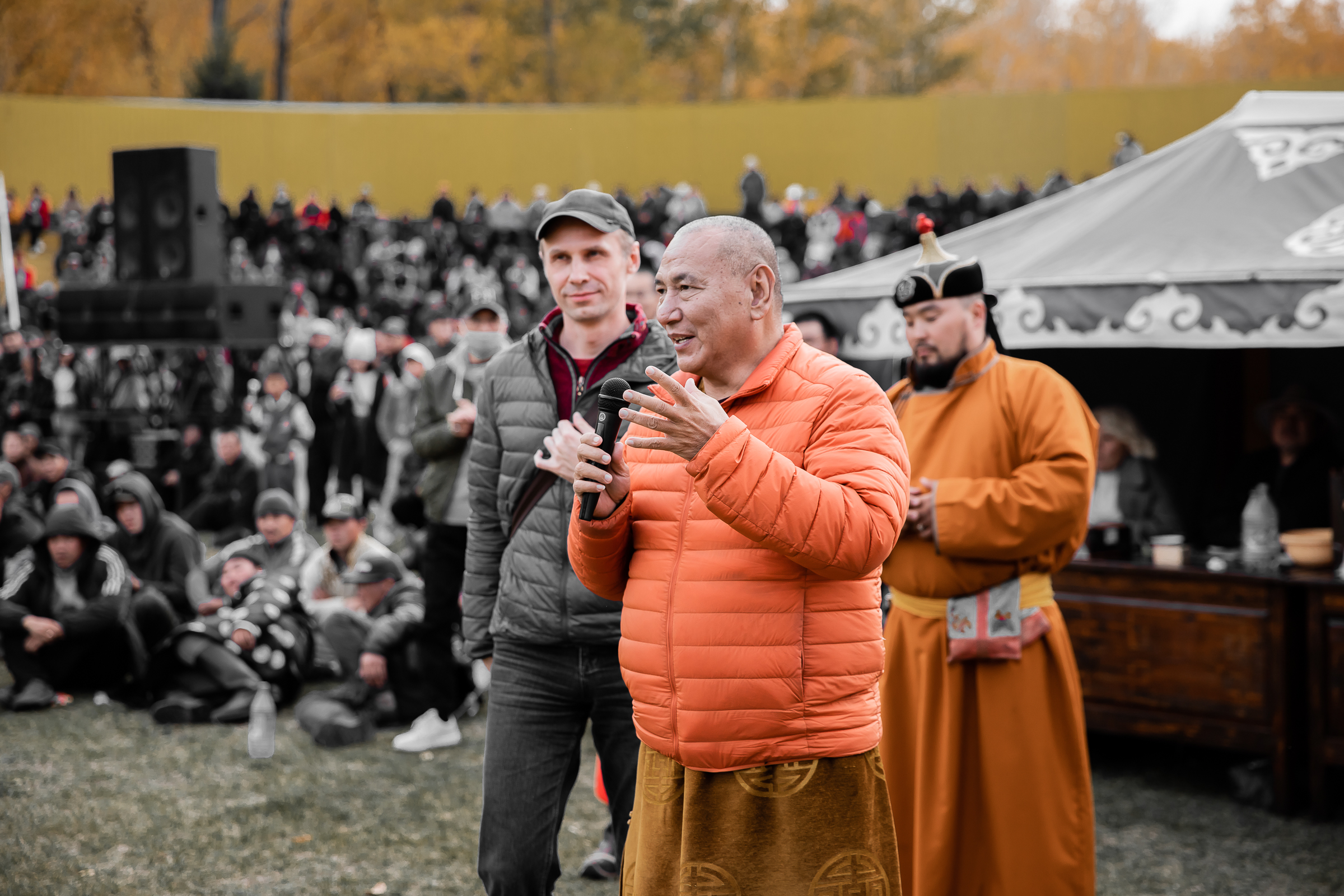 Досточтимый Геше Джампа Тинлей на соревнованиях по тувинской национальной борьбе хуреш