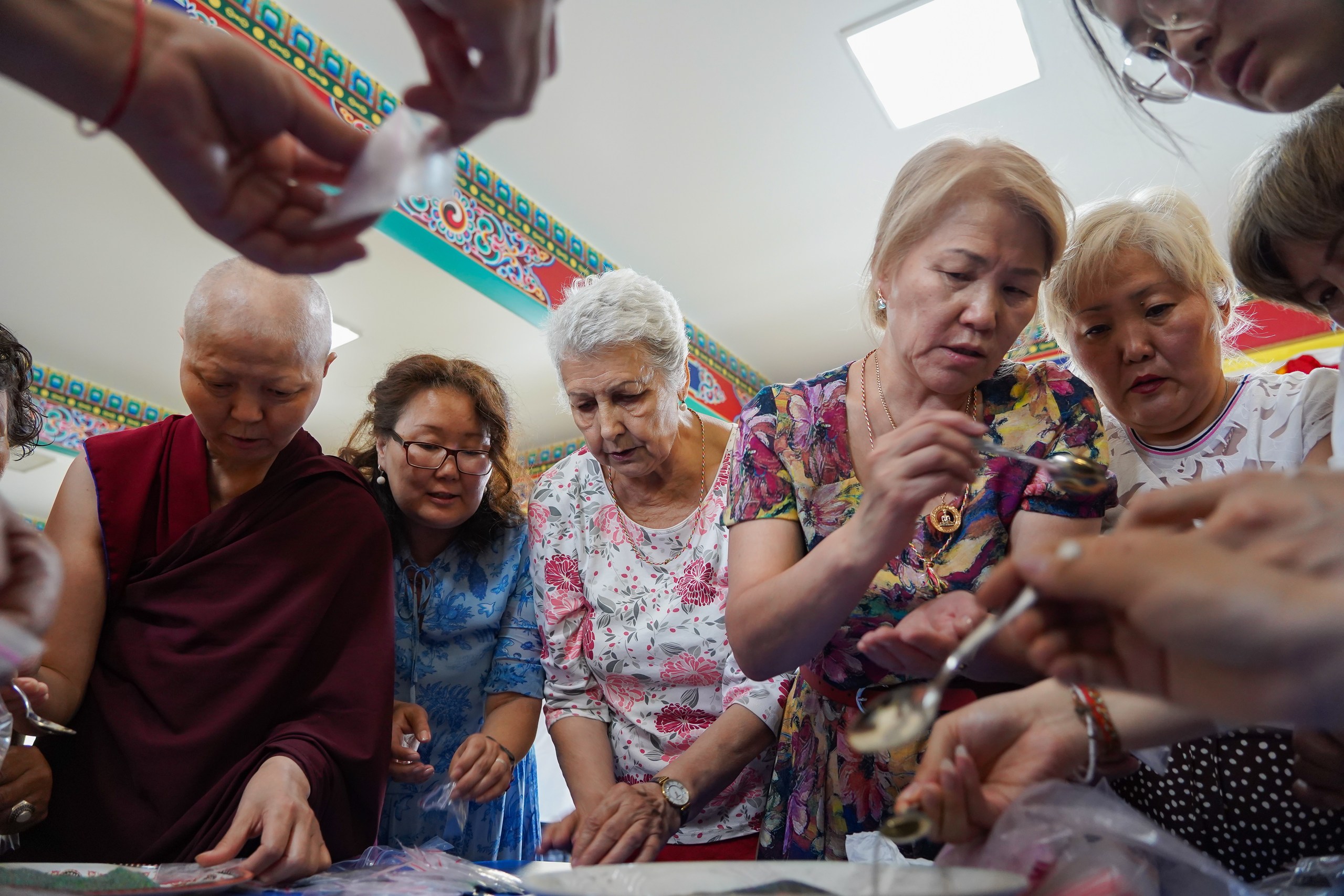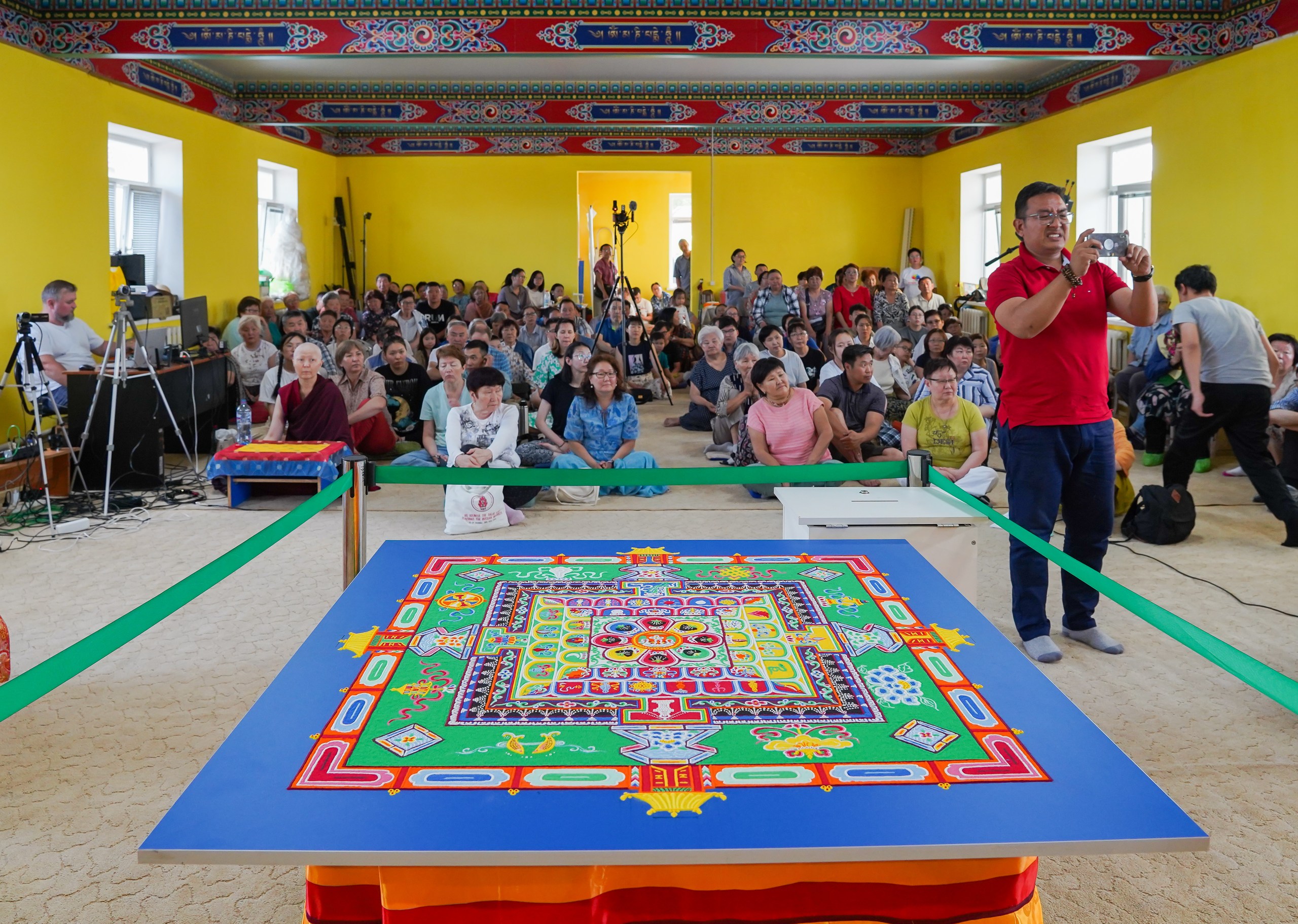 16 июля в буддийском центре «Зеленая Тара» состоялось разрушение мандалы Будды Медицины. Церемонию разрушения и подношение песка мандалы нагам Селенги в третий раз в Улан-Удэ провела делегация монастыря Сера Мей под руководством Текчена Ринпоче. Часть песка мандалы была роздана прихожанам в качестве духовной реликвии, предназначенной для хранения на алтаре, а также как объект благословения и защиты пространства от вредоносных сил. Следующее возведение мандалы Будды Медицины состоится во время всероссийского летнего ретрита на Байкале, который по традиции с 25 июля пройдет под руководством Досточтимого Геше Джампа Тинлея в Байкальском Медитационном Центре «Ламрим». Всем желающим принять участие в ретрите, добро пожаловать!