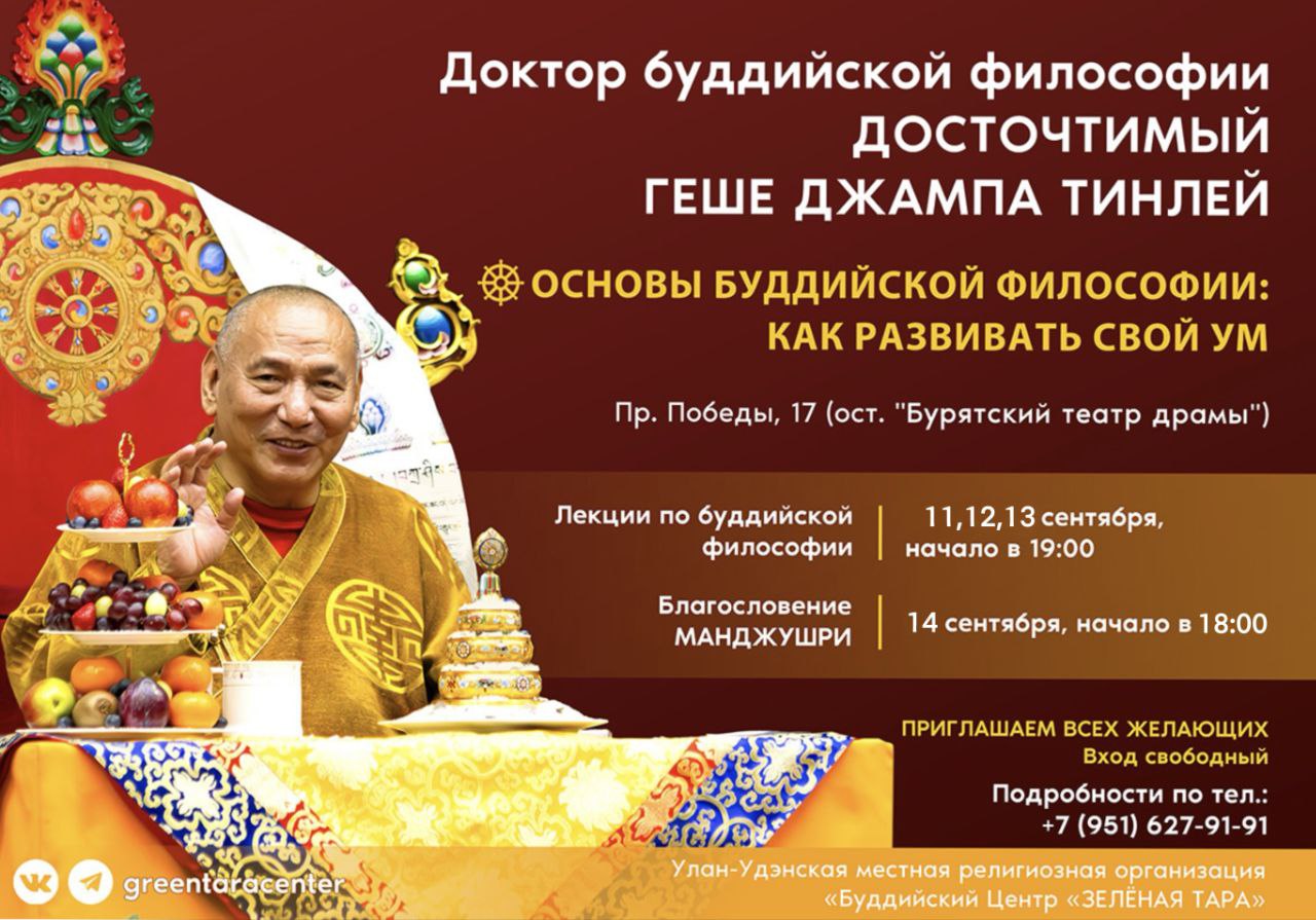 С большой радостью сообщаем о том, что в Улан-Удэ состоятся лекции Досточтимого Геше Джампа Тинлея по основам буддийской философии.
